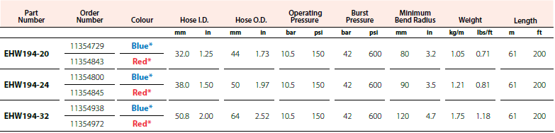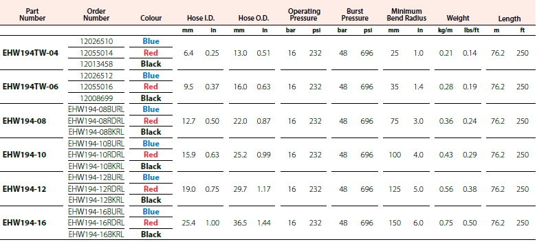 • 增強層: 2層紡織物(部分尺寸另含 1 根螺旋鋼絲)